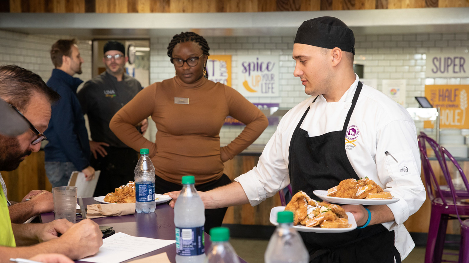 UNA's Jeff Eubanks Culinary Arts Management program offers Alabama’s first and only four-year Bachelor of Science in Culinary Arts degree. Our faculty and staff offer 85 years’ combined experience and close connections to industry leaders. Students receive hands-on cooking and management skills, from basic principles of fresh food preparation to financial cost control and entrepreneurship. Students participate in high-level projects, organic food procurement, and food service management, with further opportunities in competitions, workshops with guest master chefs, and internships. Program graduates are fully qualified for and have excellent prospects in a wide range of hospitality positions.