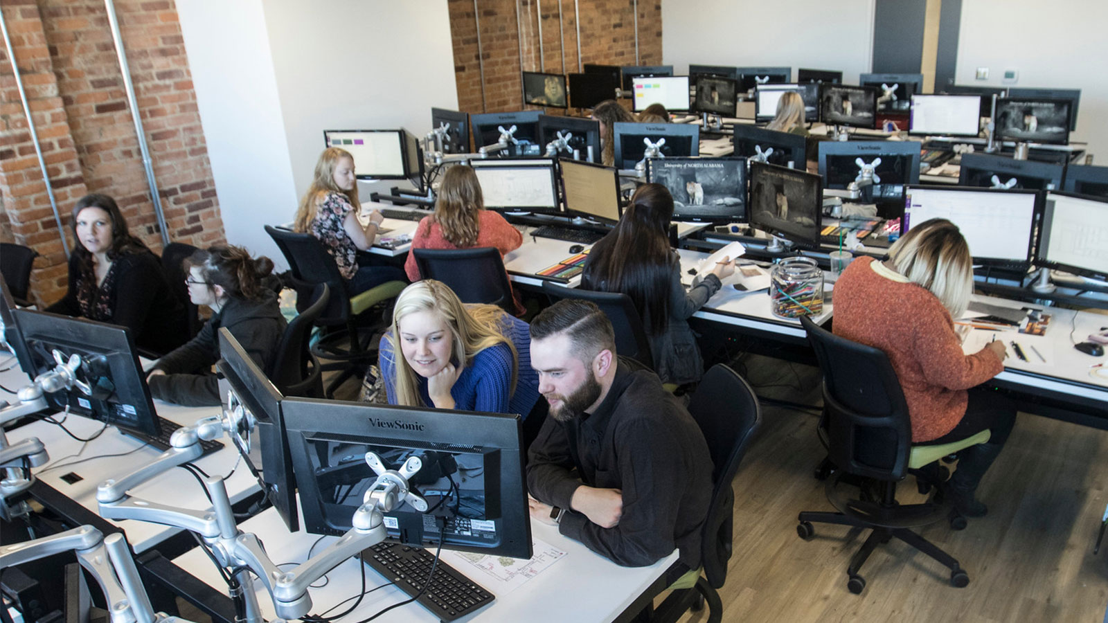 Our studios are housed in the Connie D. McKinney Center, located in downtown Florence. A historic cotton warehouse built in 1917, it was converted to house some of UNA’s creative majors in 2016. Spaces available to IAD students include a 24-seat drafting studio equipped with drafting tables and dual-monitor computers, a 20-seat CAD Technology lab, a resource library with industry products and samples, and a print station. The McKinney Center also includes other lecture halls, a gallery, a demonstration kitchen, a student lounge, other and creative spaces.
